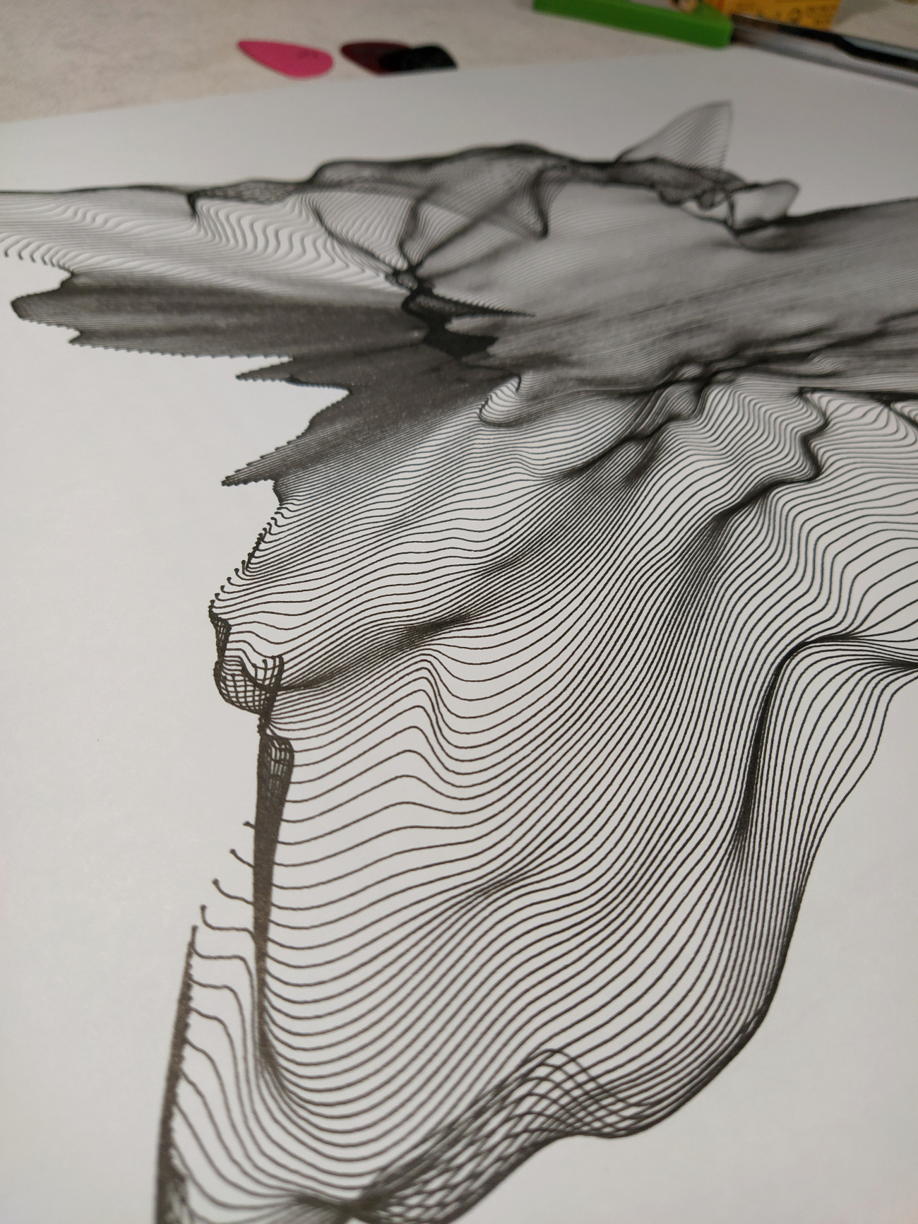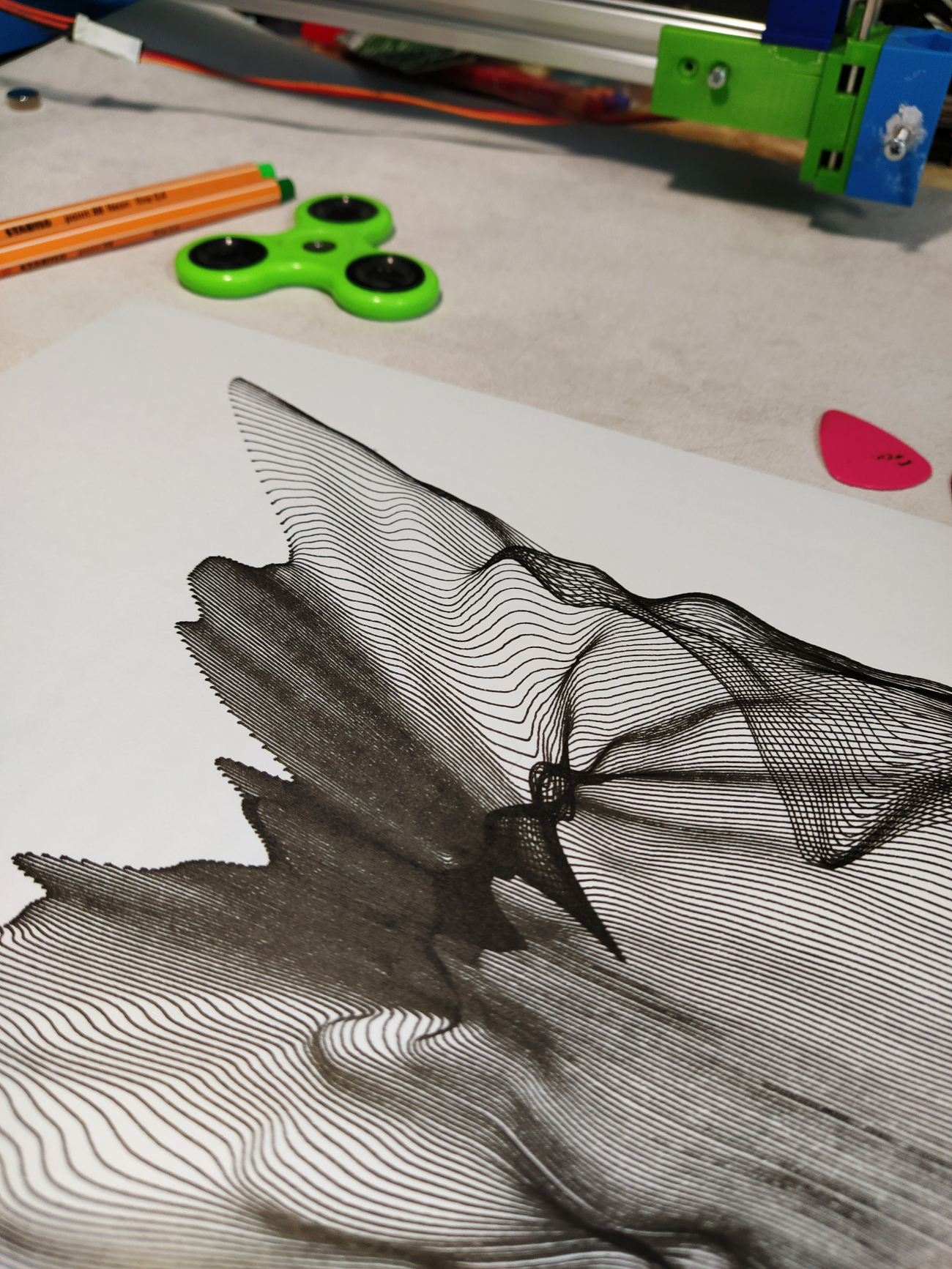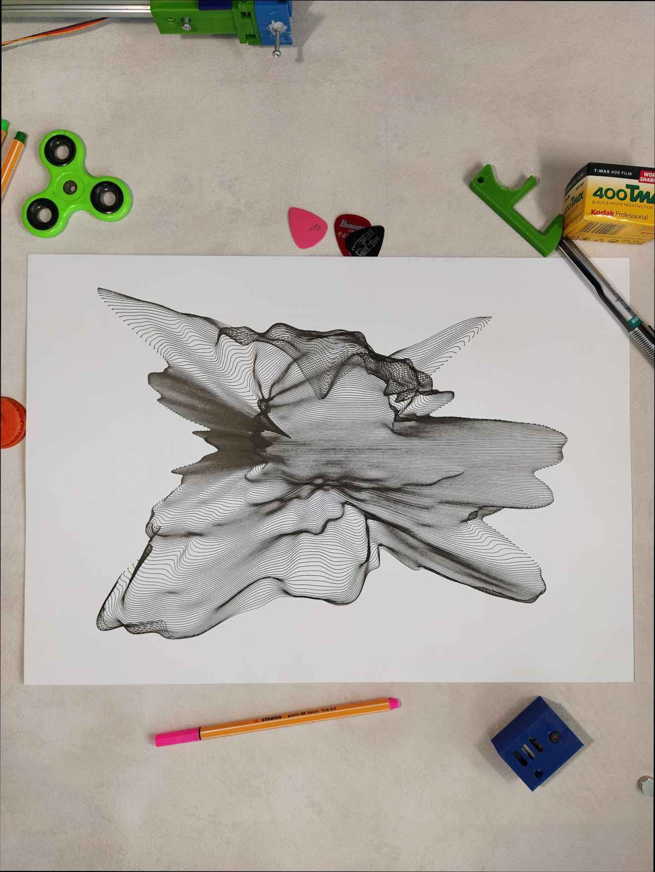 It’s been a long time since I wanted to have a practice with surface plotting. For me that kind of patterns still looks like a magic. The bunch of lines combined with each other make a sense of surface — a distorted and wrinkled surface. You can change a few parameters in this pattern and get absolutely different result.